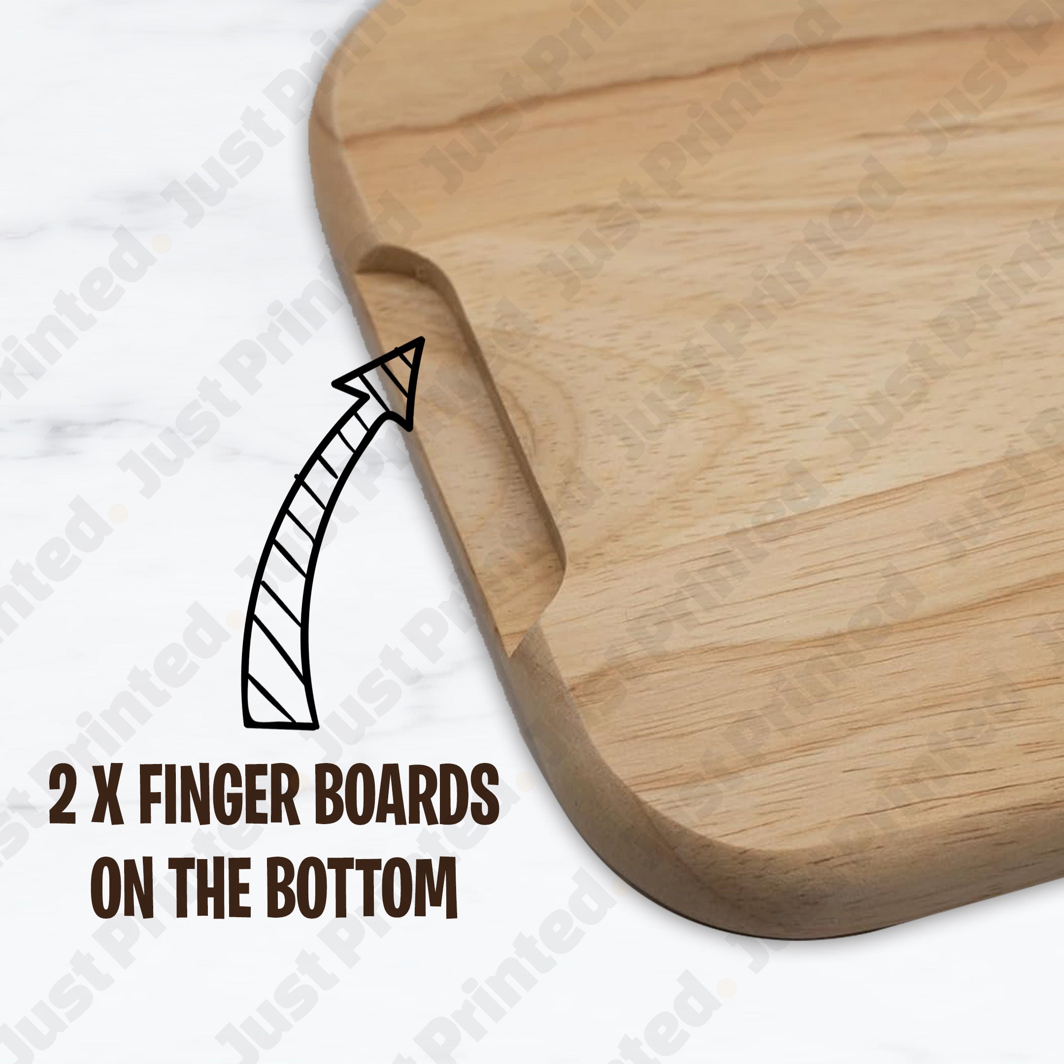 As a natural wood product, the colour and grain of the Tea and Biscuit Board may vary, which can cause the engraving to appear slightly darker or lighter in certain areas. However, the surface will remain smooth and even.
