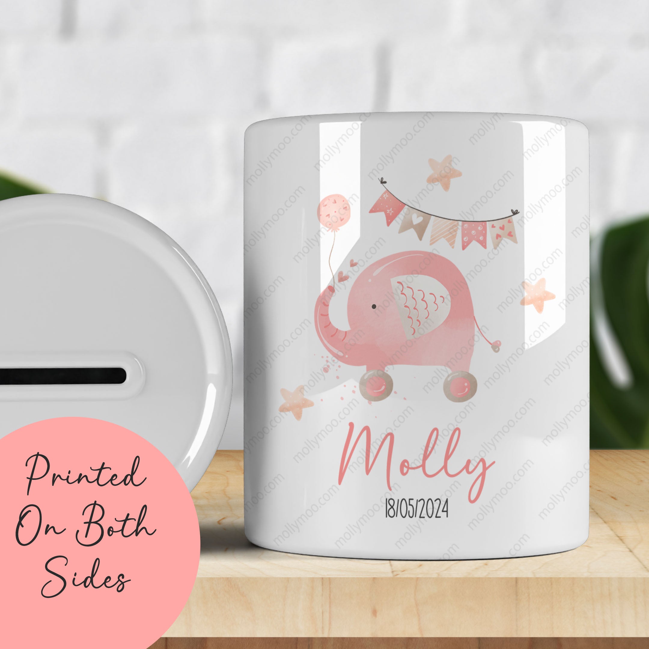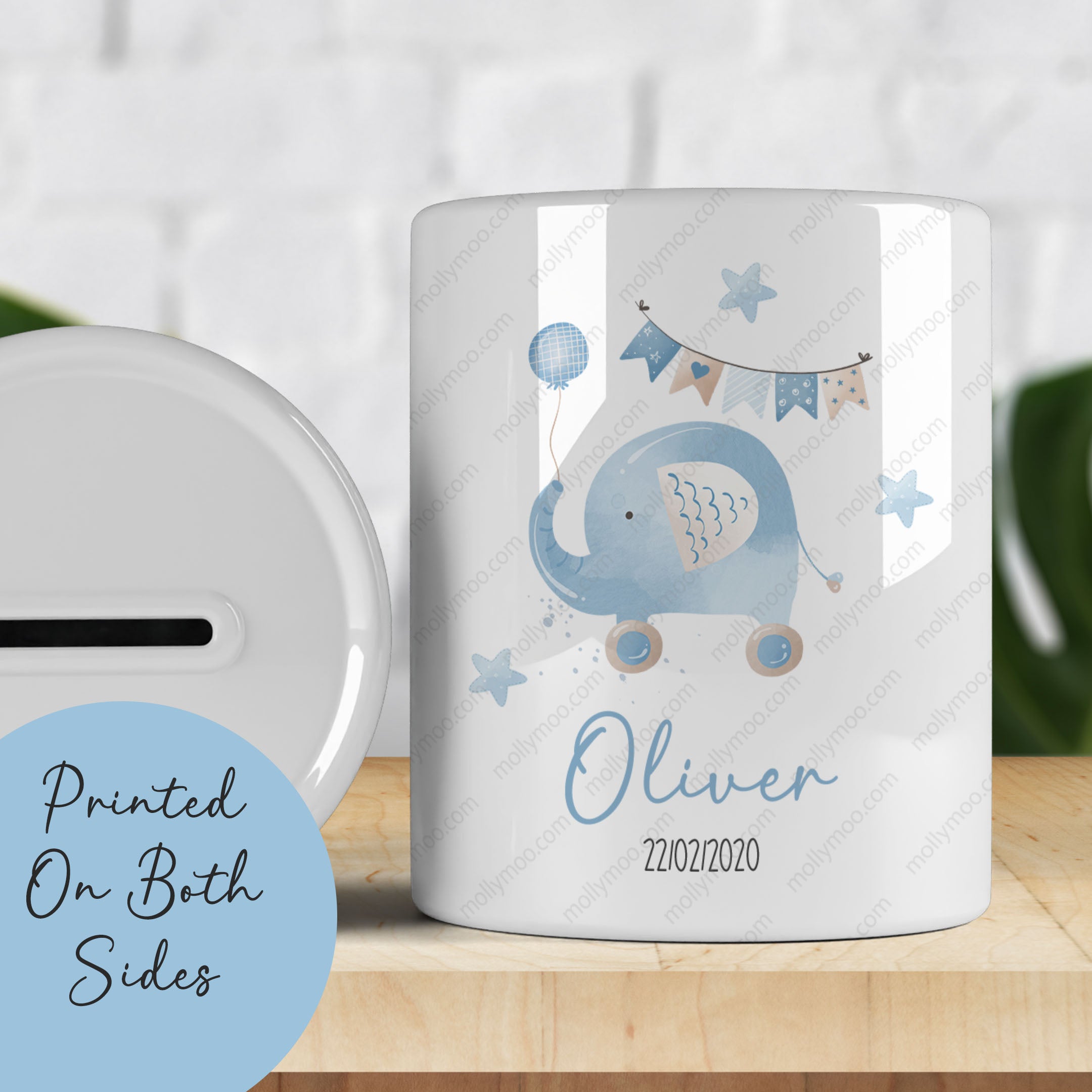 Personalised Cute Elephant Childs Money Box Gifts for Boy or Girl Piggy Bank Savings Jar Decor Coin Box Money Bank Nursery Ceramic