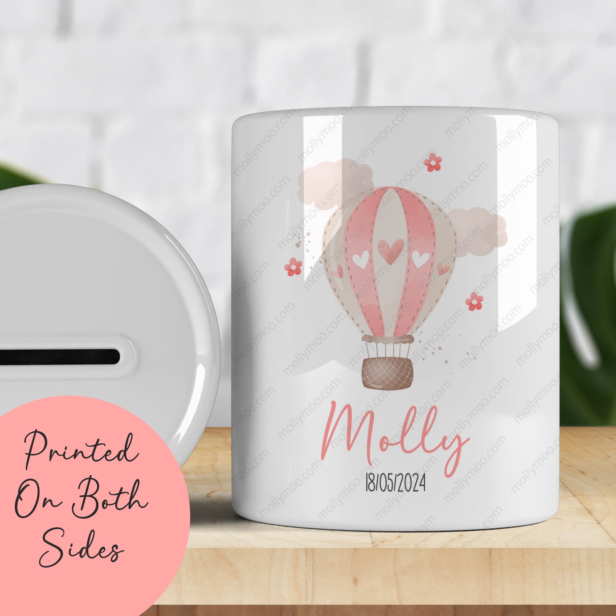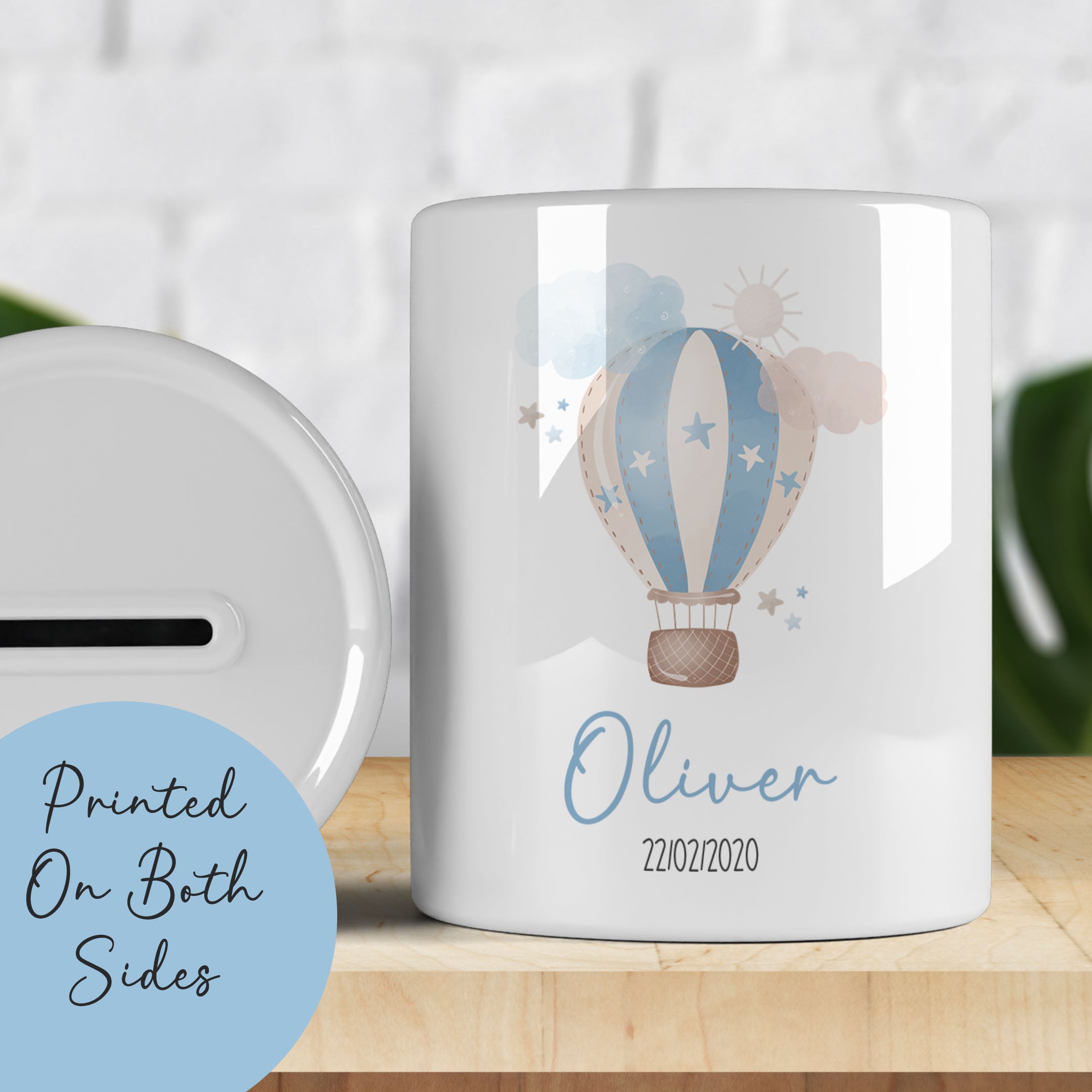 Personalised Cute Hot Air Balloon Childs Money Box Gifts for Boy or Girl Piggy Bank Savings Jar Decor Coin Box Money Bank Nursery Ceramic