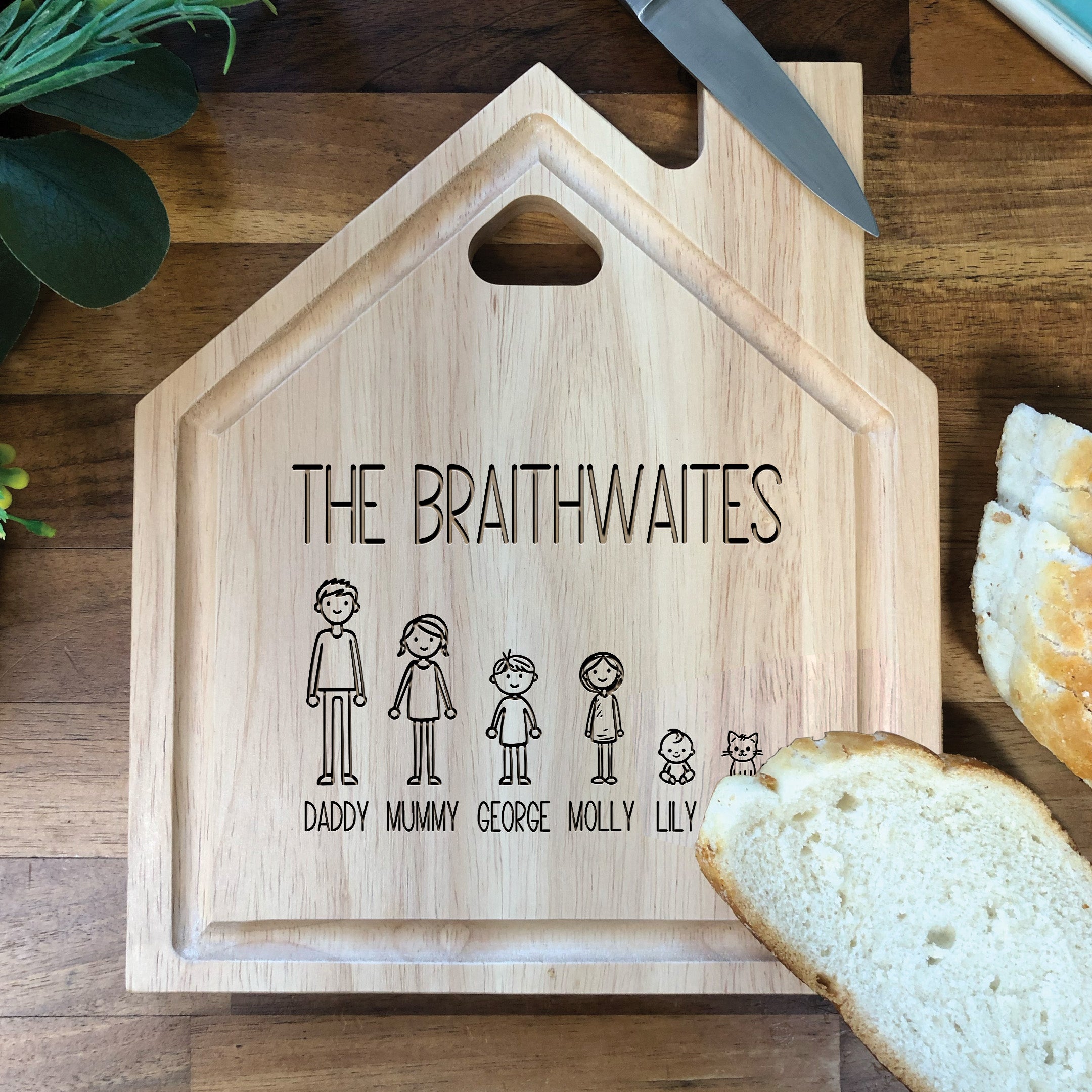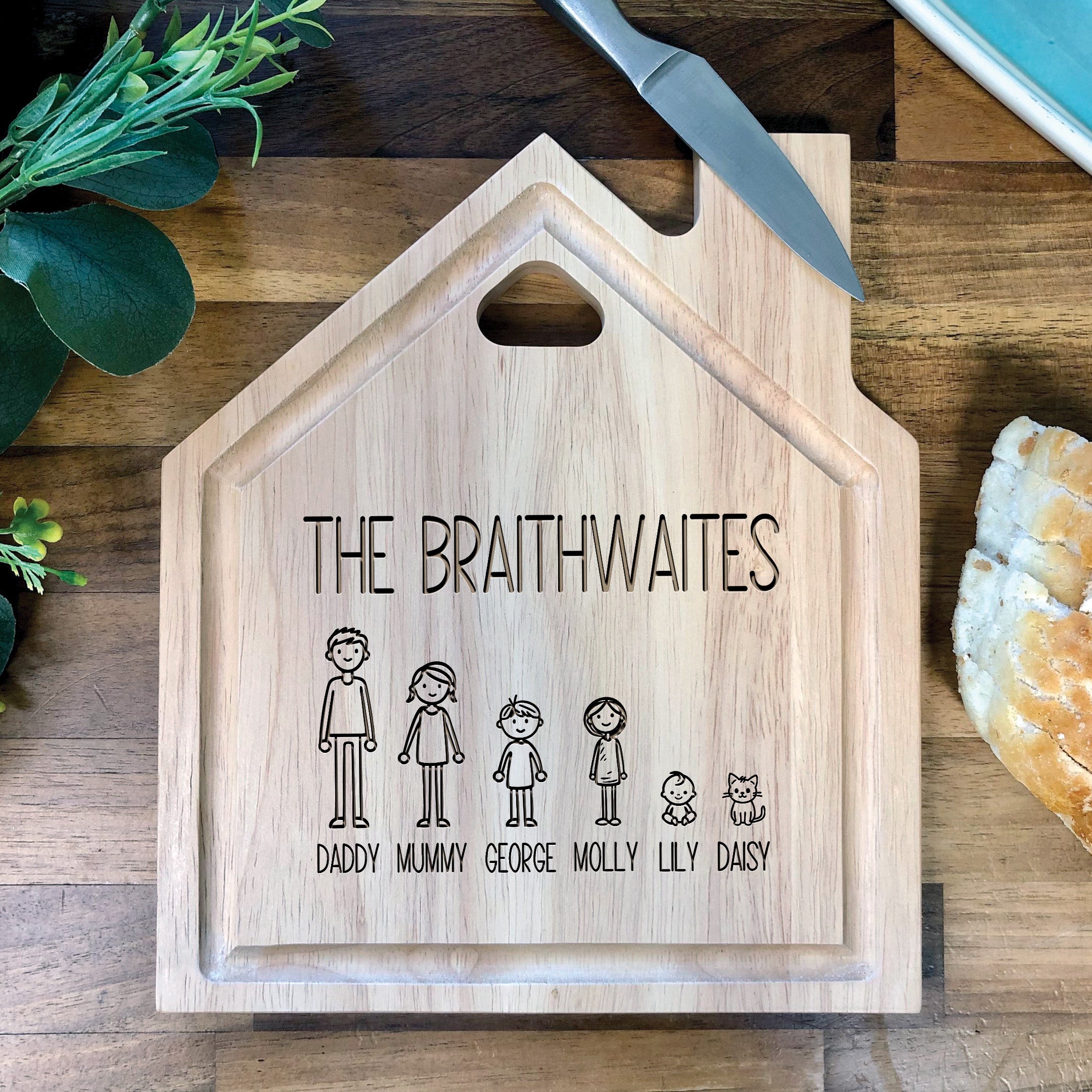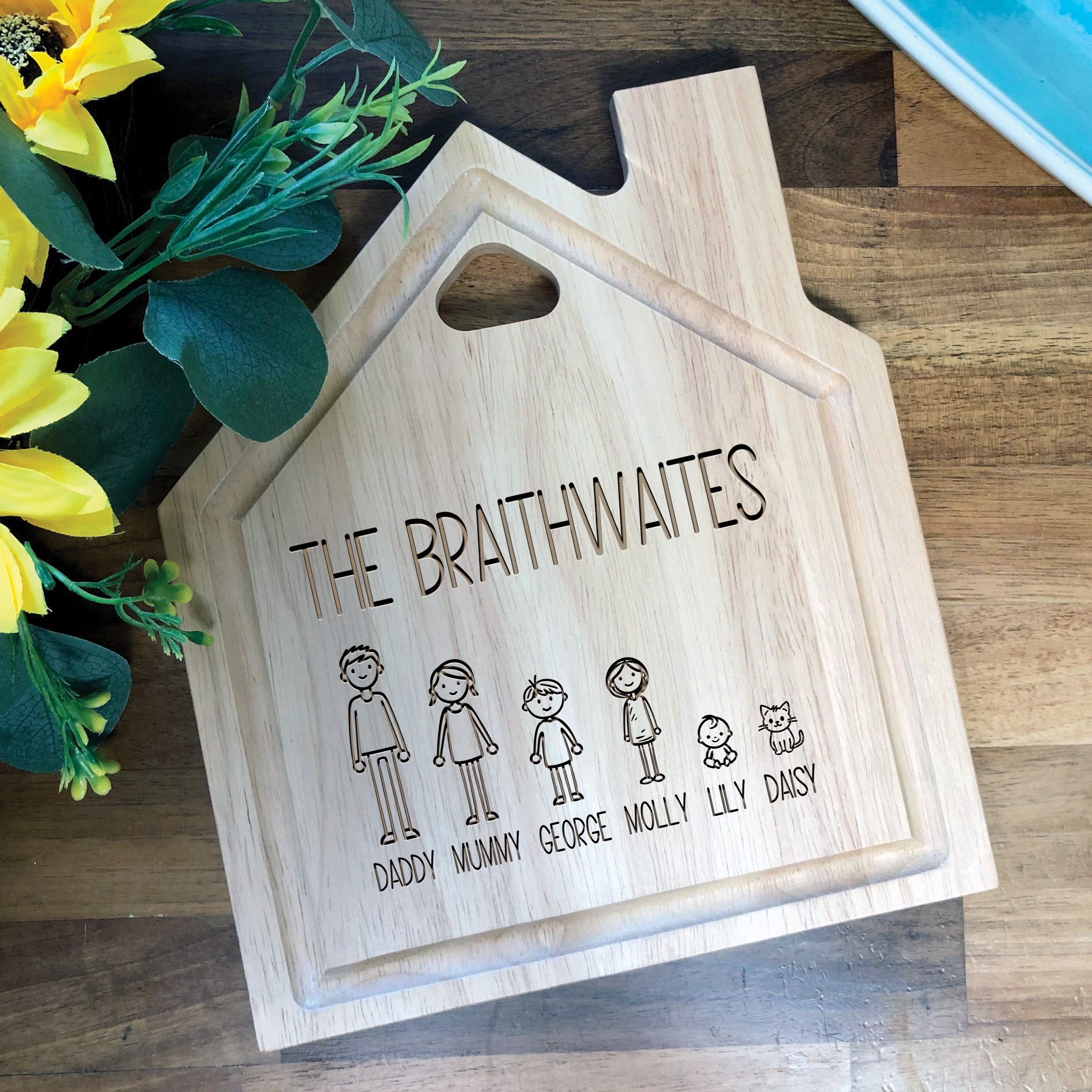Personalised Our Family Cartoon Stick People House Shaped Chopping Board