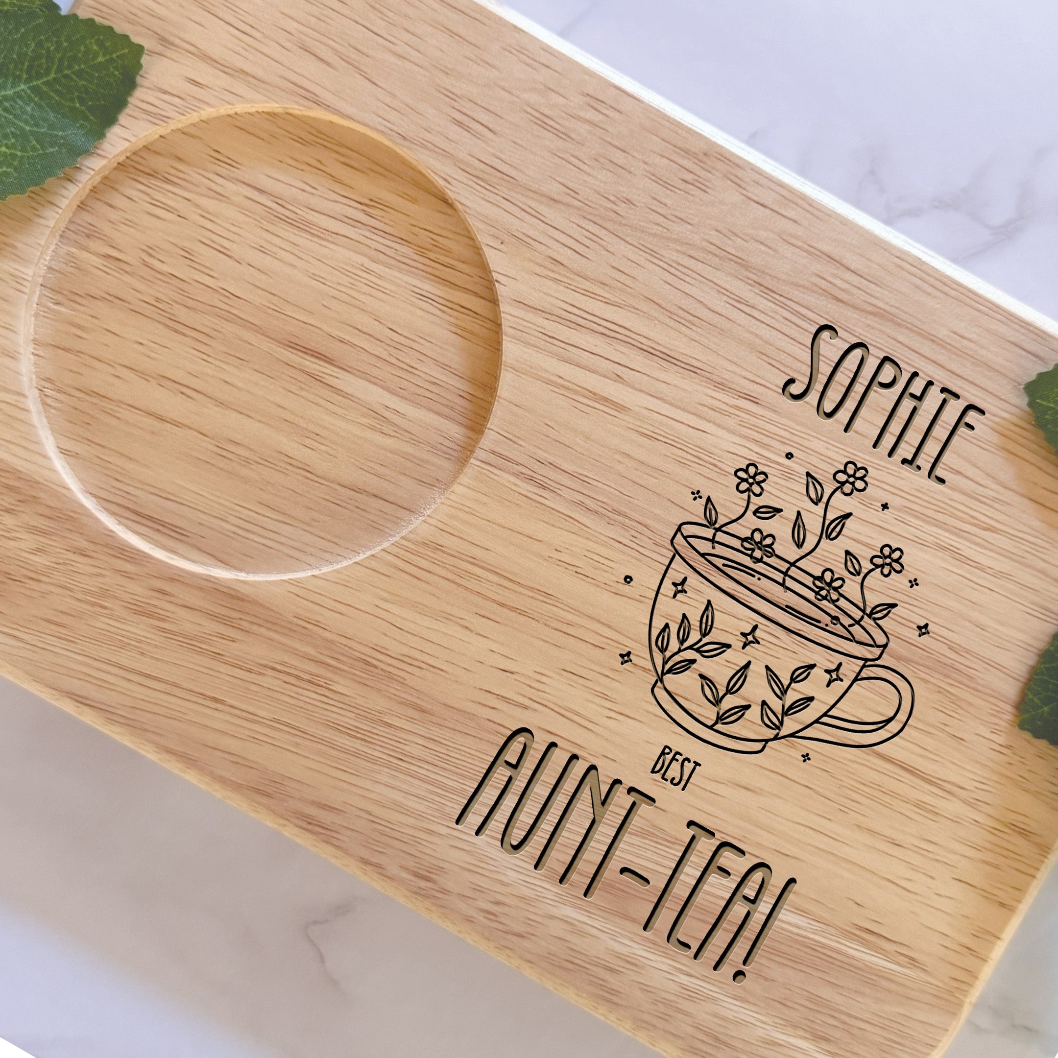 Introducing our Personalised Laser Engraved "Best Aunt-Tea" Tea & Biscuits Board – the perfect gift for your favourite Auntie who shares a love of tea and treats! Made from high-quality wood, this charming board showcases a delightful "Aunt-Tea" slogan, celebrating the special connection with family – and friends who feel like family.