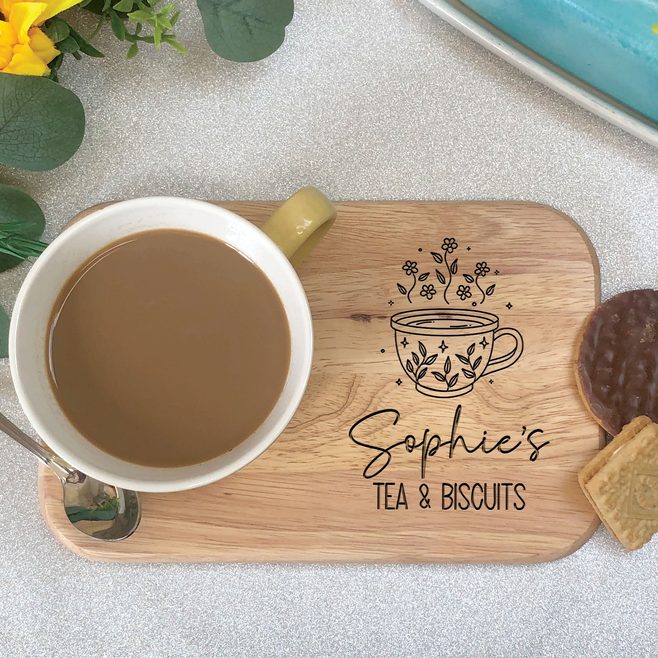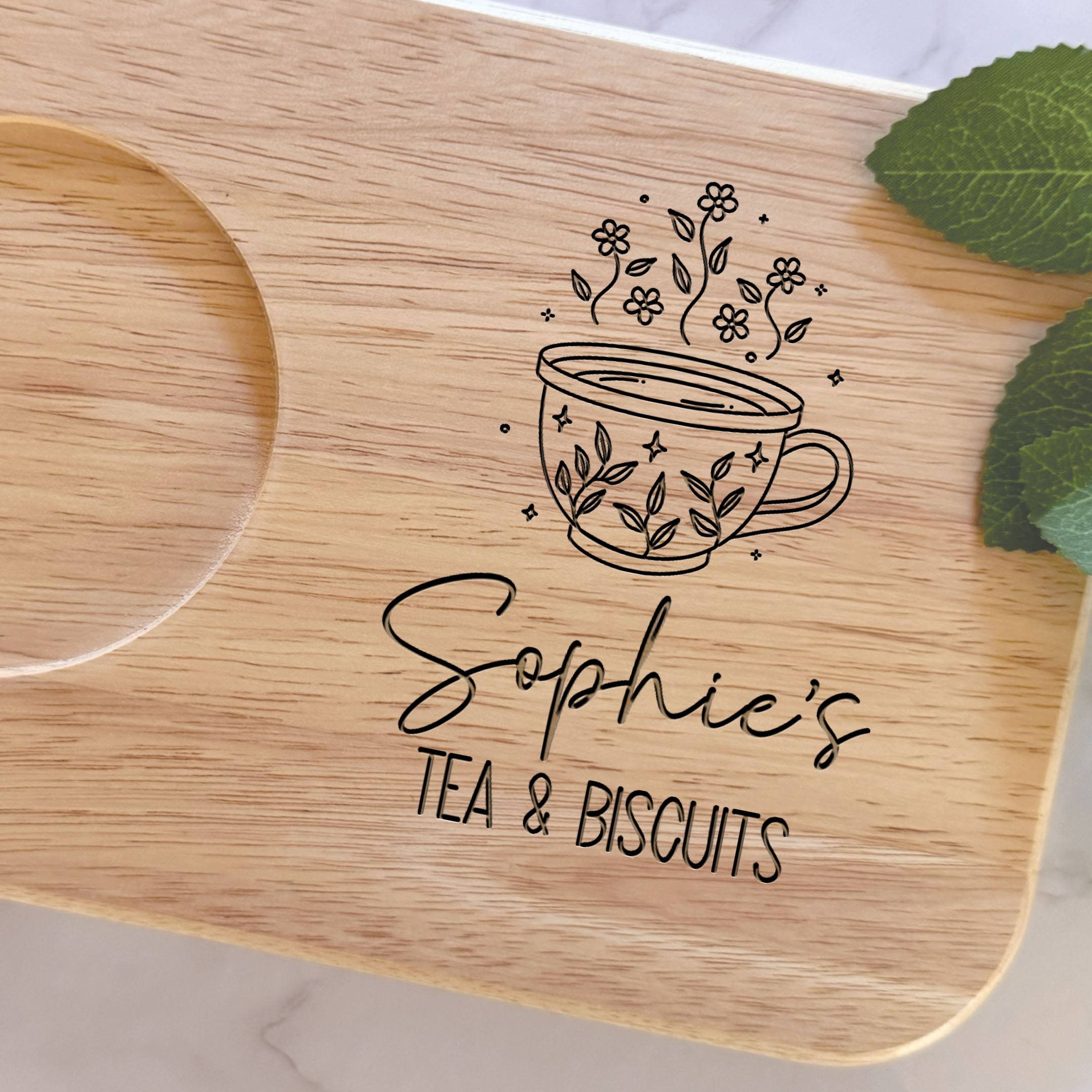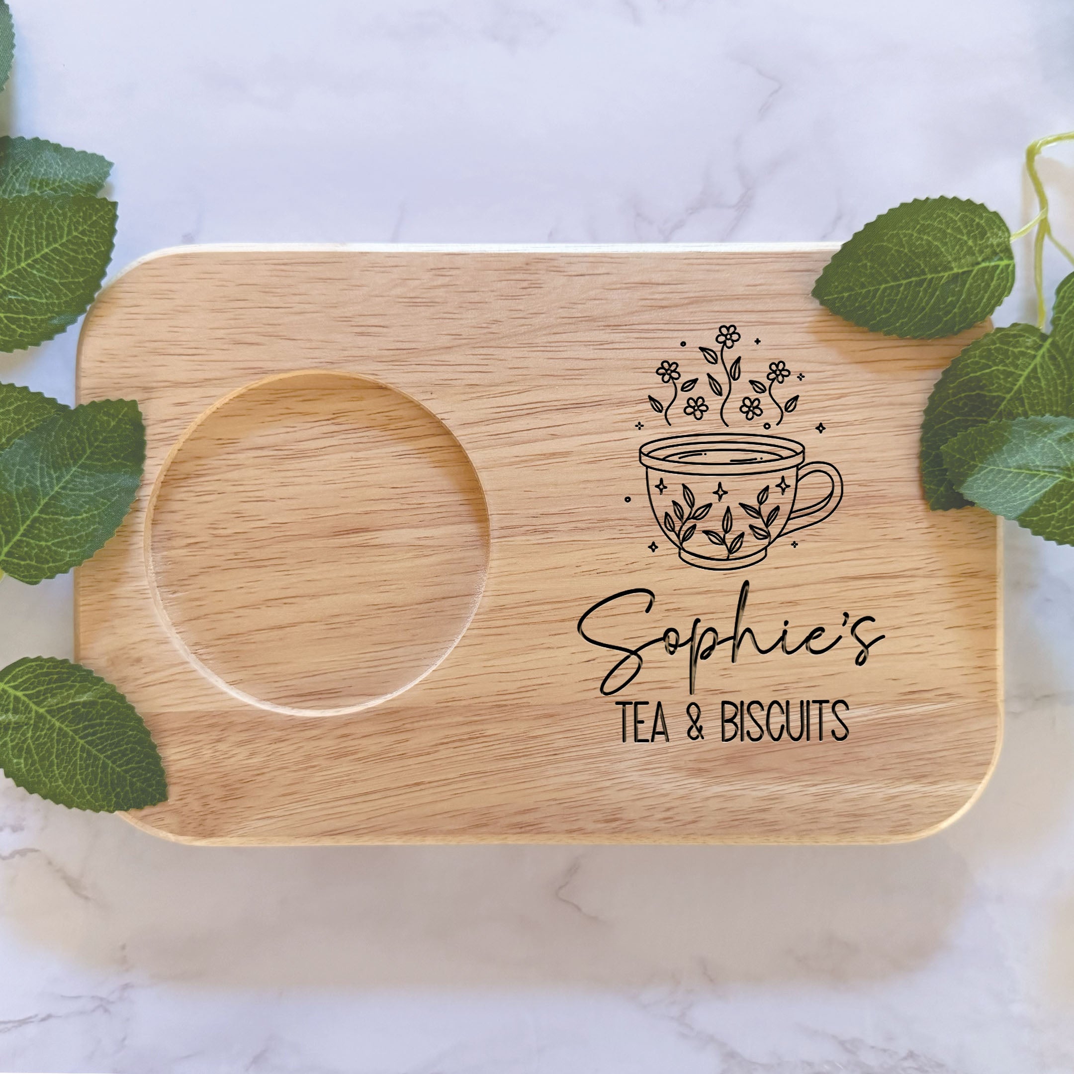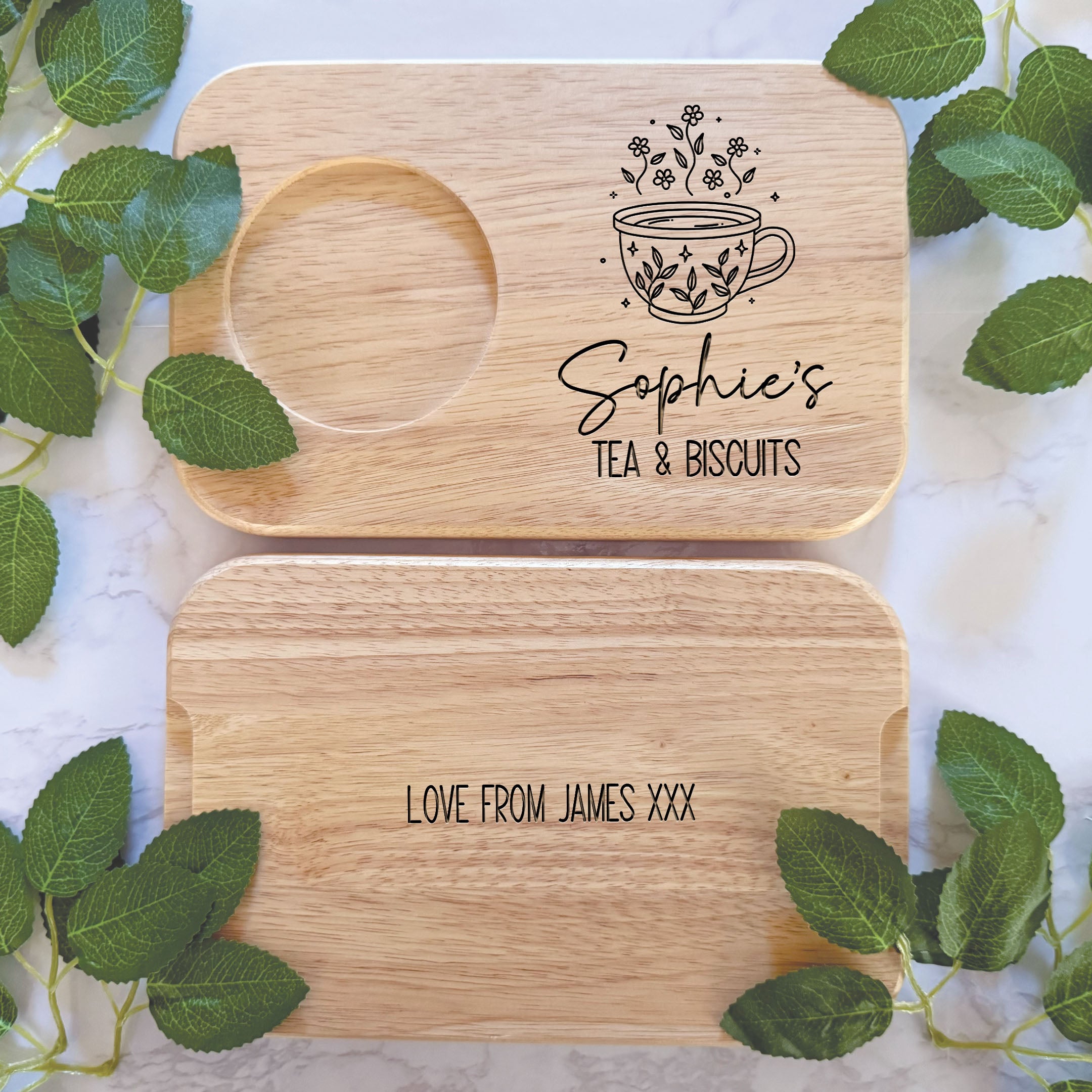 Our fabulous Personalised Engraved Wooden Tea and Biscuit Board adds a charming rustic touch to any kitchen. Crafted from natural wood, it is perfect for both food preparation and serving.