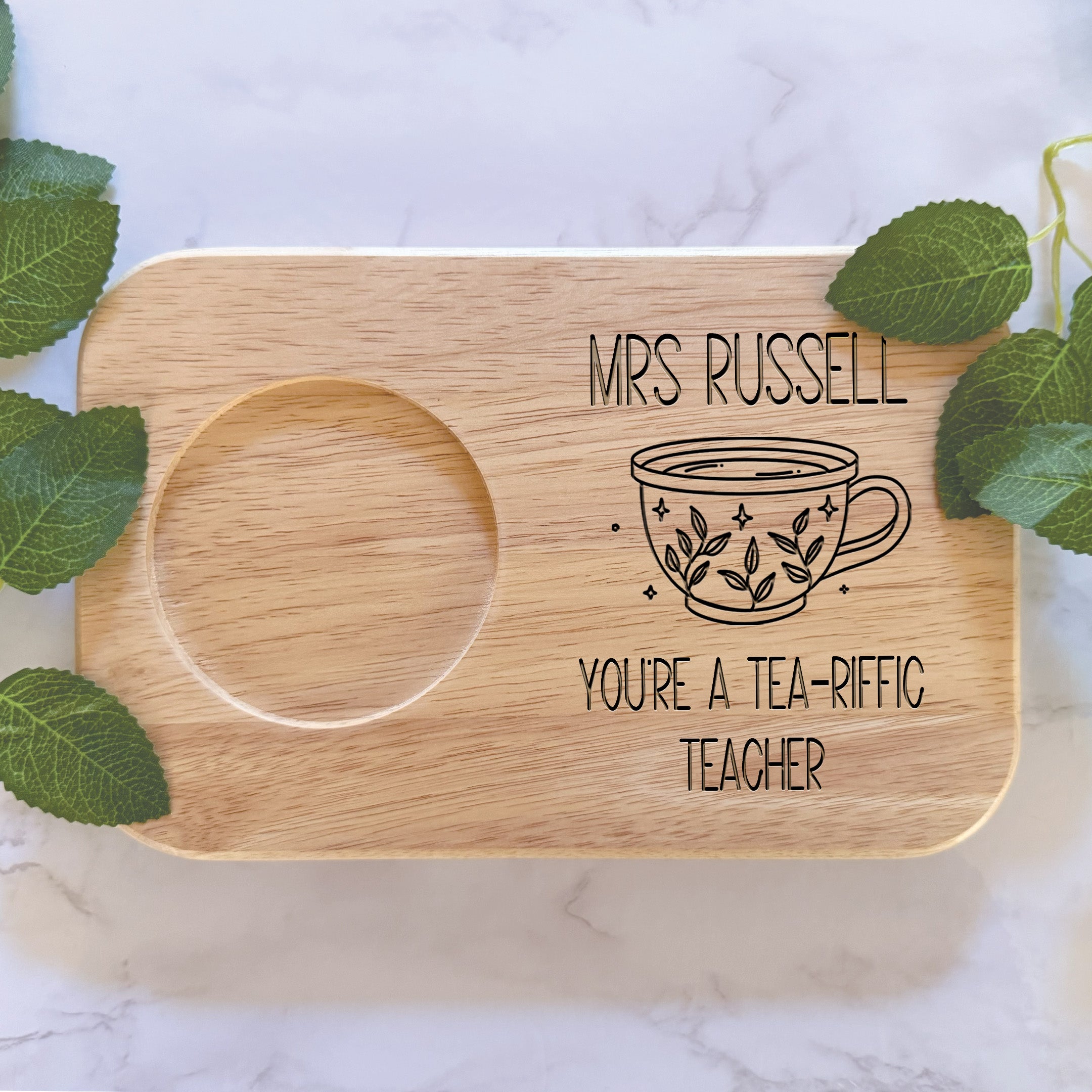 Personalised Engraved You're a Tea-Riffic Teacher Tea & Biscuits Board