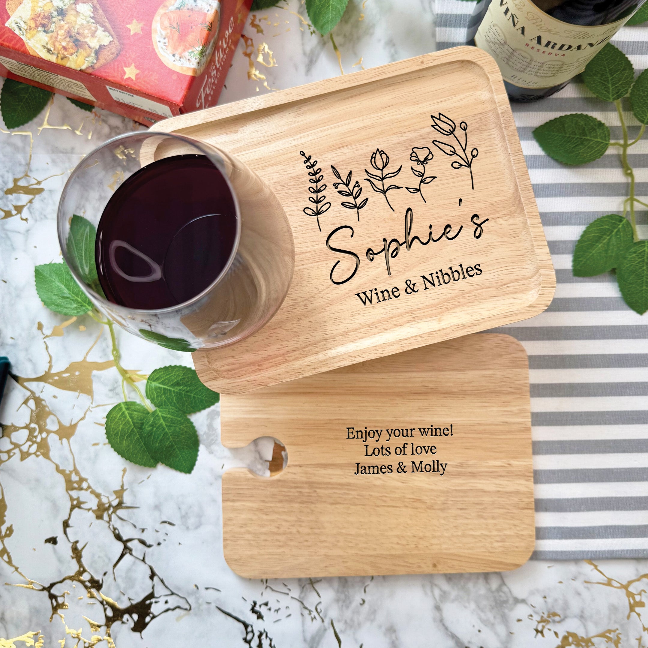 Introducing our Personalised Laser Engraved Wine & Nibbles Board. A perfect gift for the Wine lover in your life.