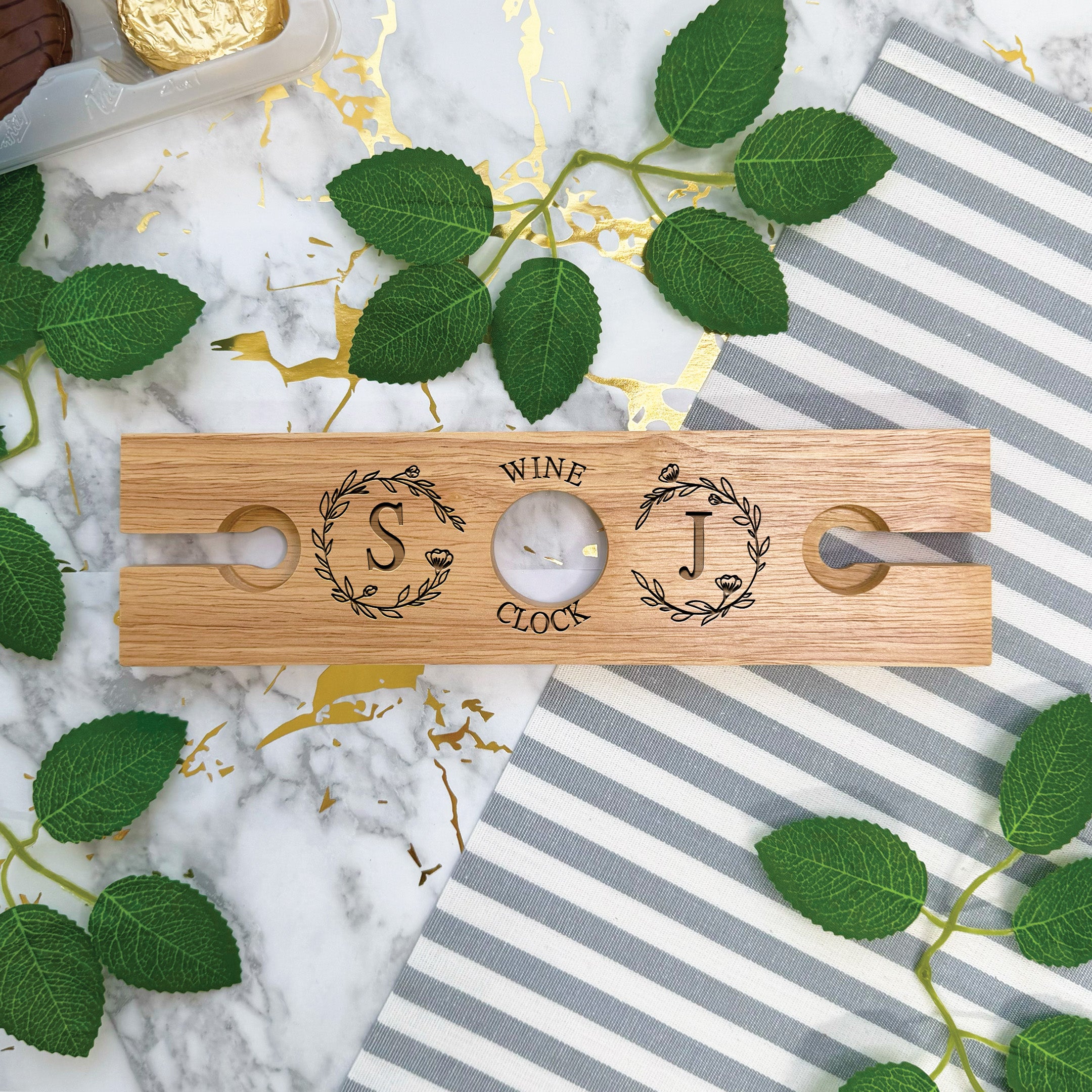 Engraved Initials Wine O Clock Glass Caddy Holder For 2 Glasses