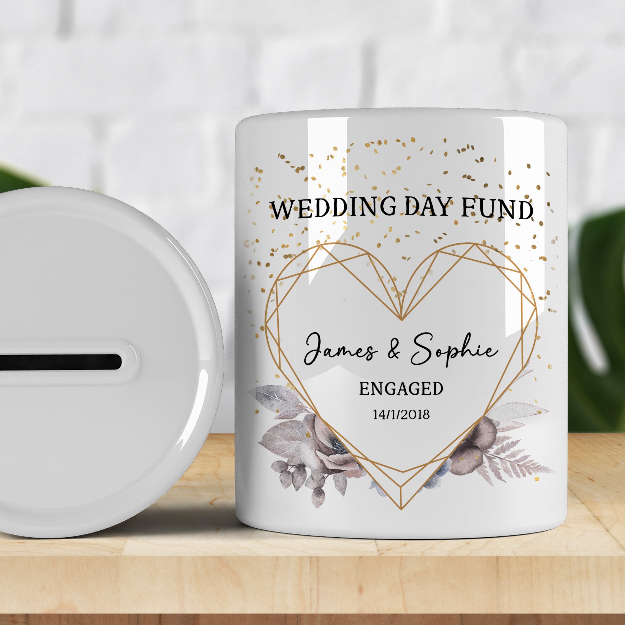 Personalised Wedding Fund Money Box, Engagement Gift For Couples