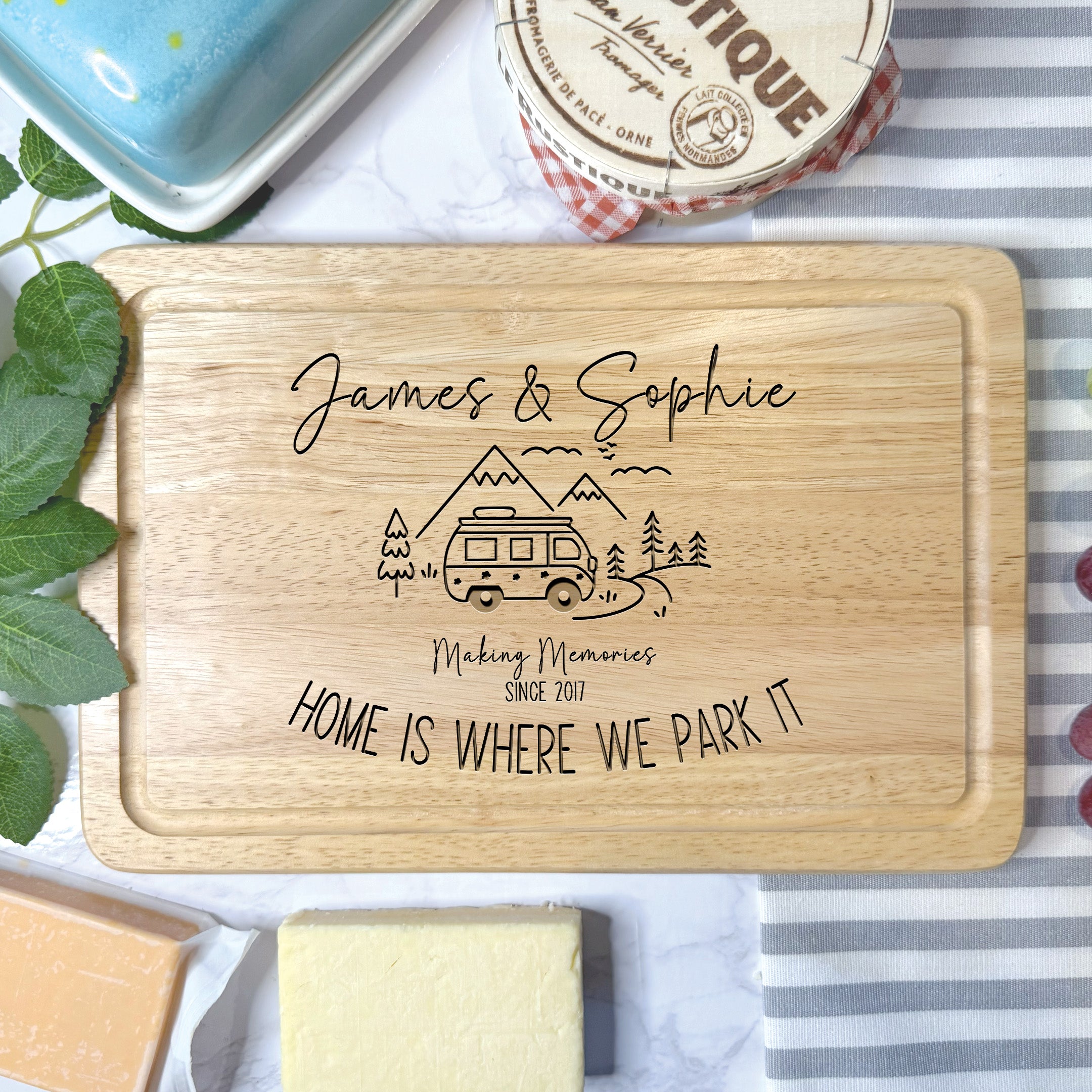 Engraved Home Is Where We Park It Campervan Chopping Board