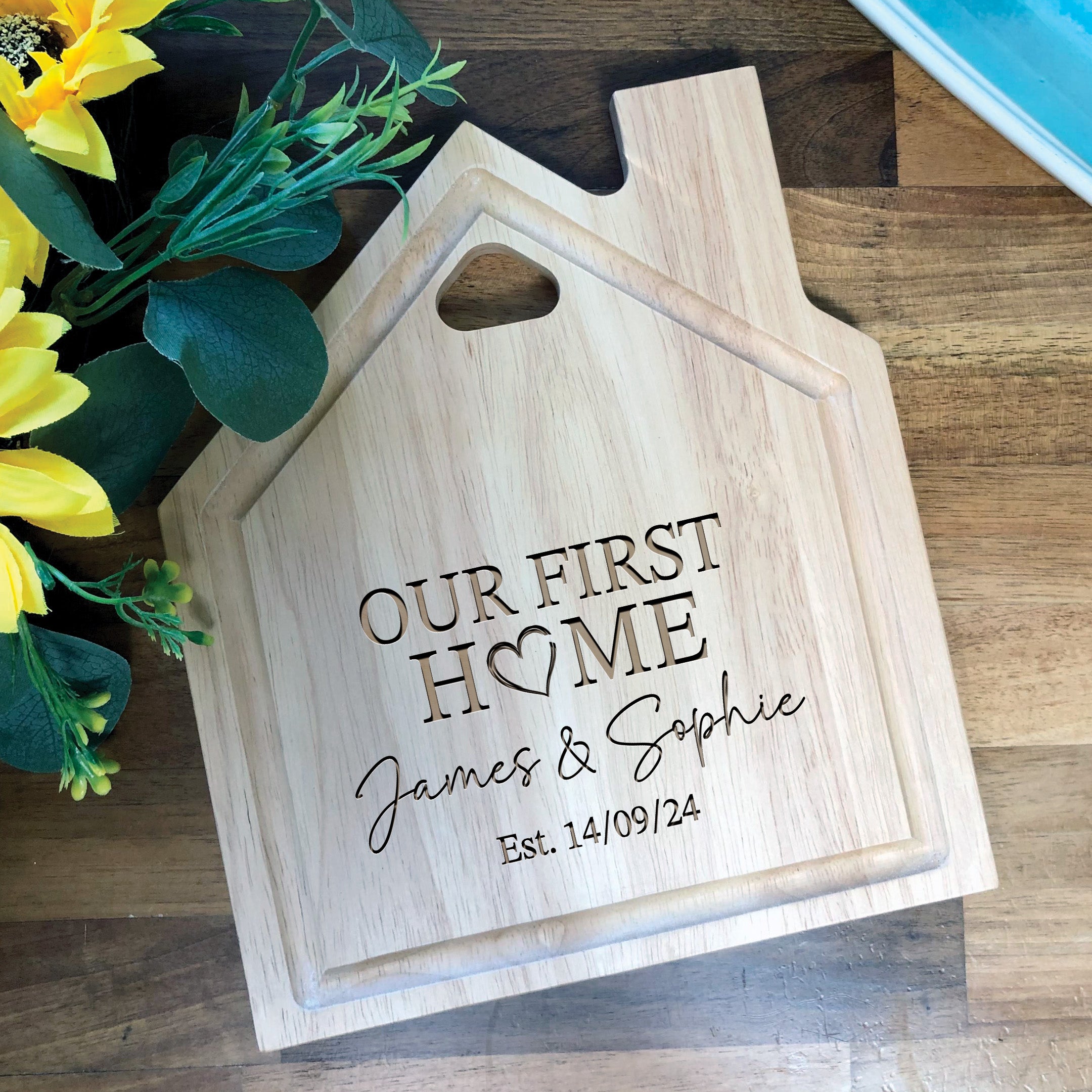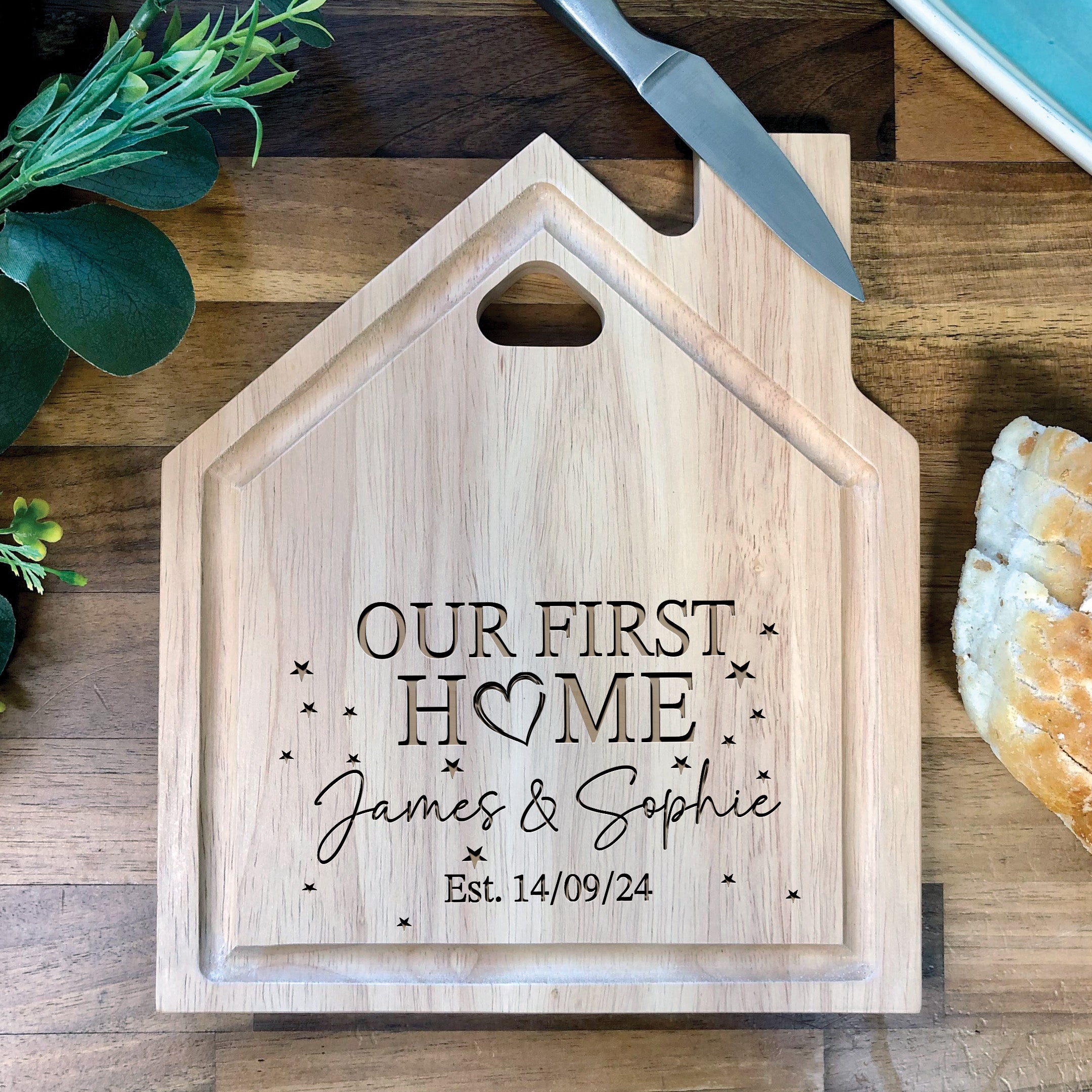 Engraved Our First Home House Shaped Chopping Board