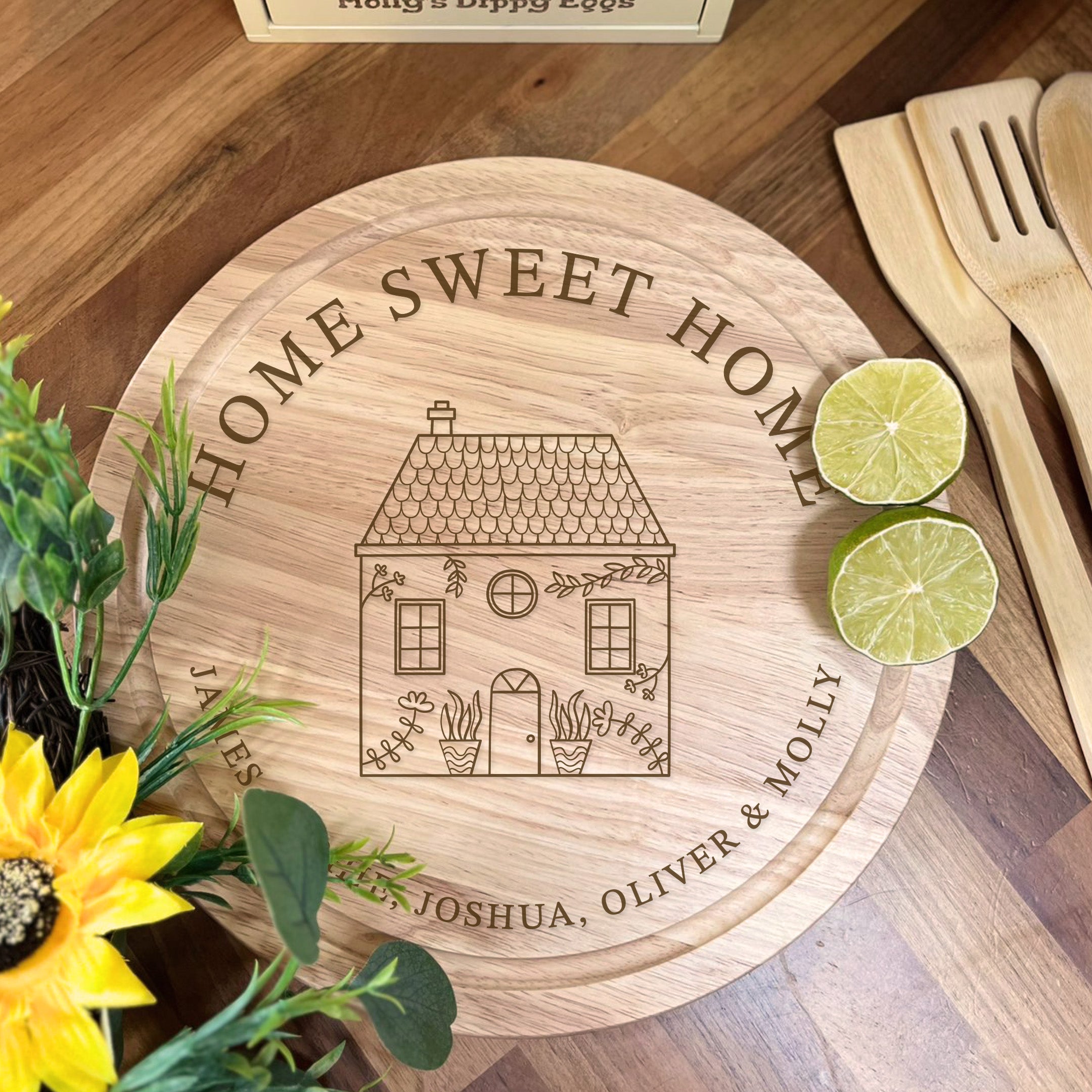 You can personalise this chopping board with 2 lines, allowing up to 30 characters per line. Please note that all characters will be in fixed uppercase letters, so be sure to check spelling and grammar carefully.